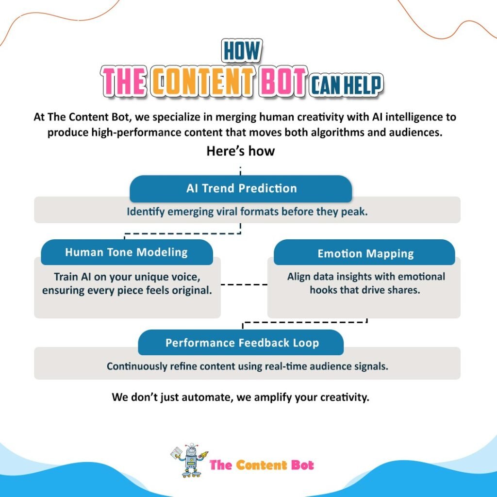 At The Content Bot, we specialize in merging human creativity with AI intelligence to produce high-performance content that moves both algorithms and audiences.