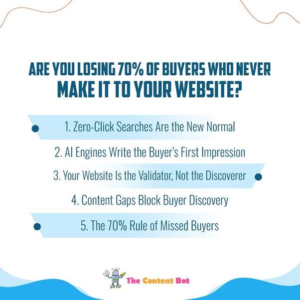 At The Content Bot, we help B2B companies capture the 70% of buyers who never reach websites with discovery-first strategies: