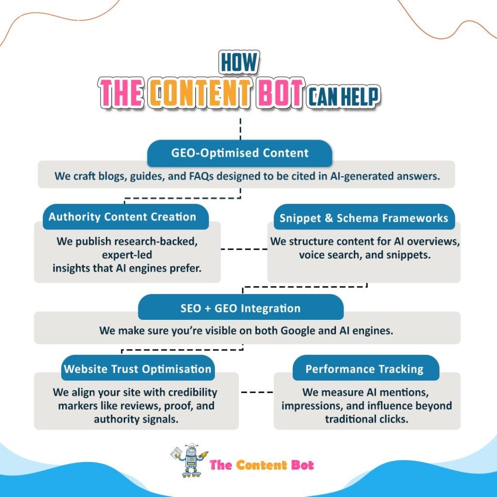 - GEO-Optimised Content -We craft blogs, guides, and FAQs designed to be cited in AI-generated answers.