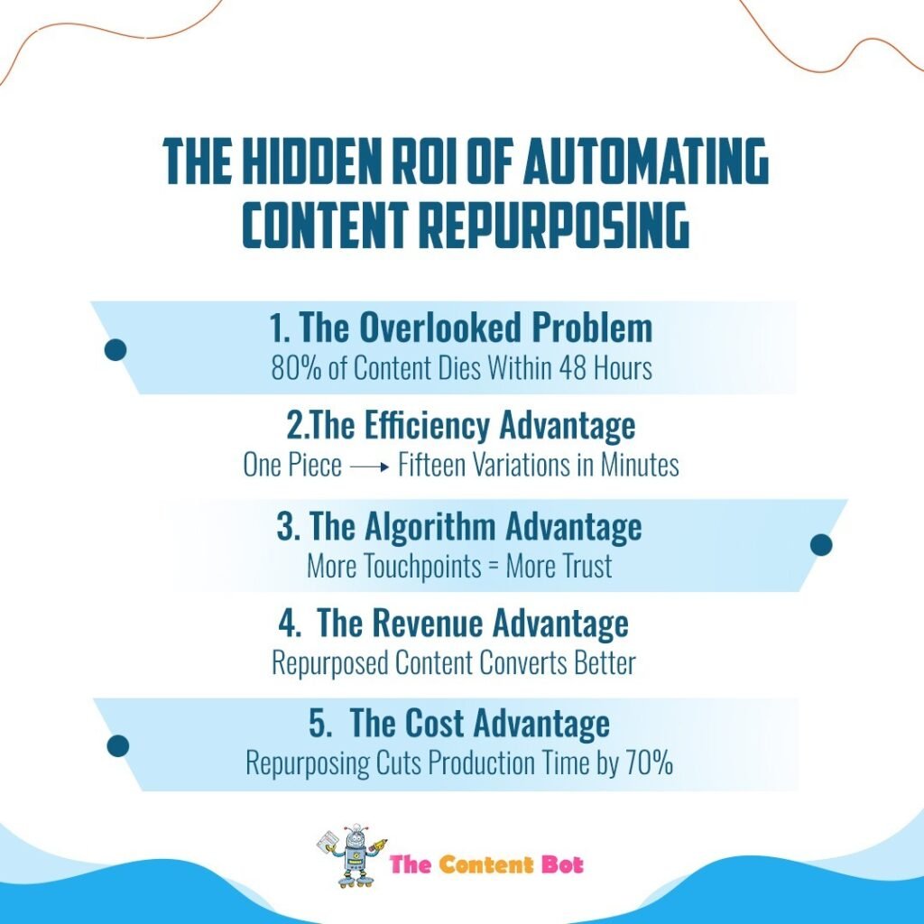 At The Content Bot, we help brands unlock the hidden ROI of automated repurposing through AI-driven systems that turn single ideas into multi-platform impact.