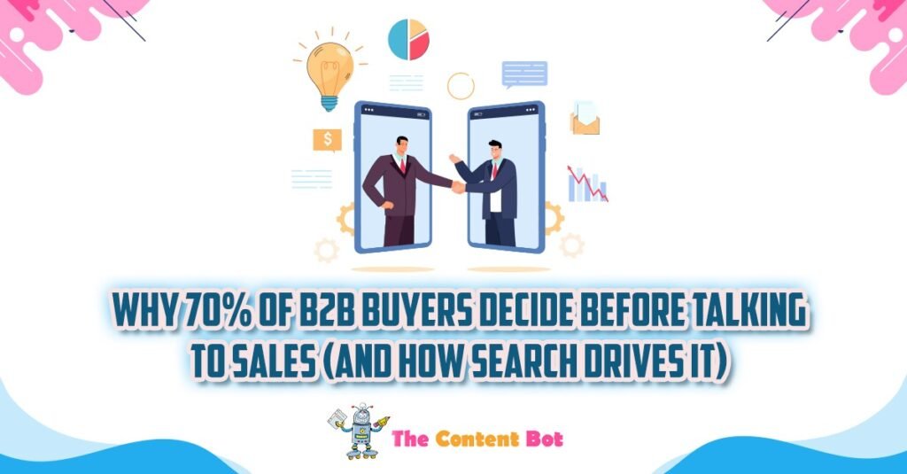 In 2025, the B2B buying journey looks very different from what it did a decade ago. By the time a prospect finally talks to sales, they’ve already researched, compared, and shortlisted vendors. Studies show 70% of B2B buyers make their decision before engaging with a salesperson. What drives this? Search. Buyers rely on Google, AI assistants, and peer reviews to guide them. This blog explores how search shapes the buying journey and what you can do to influence decisions earlier.