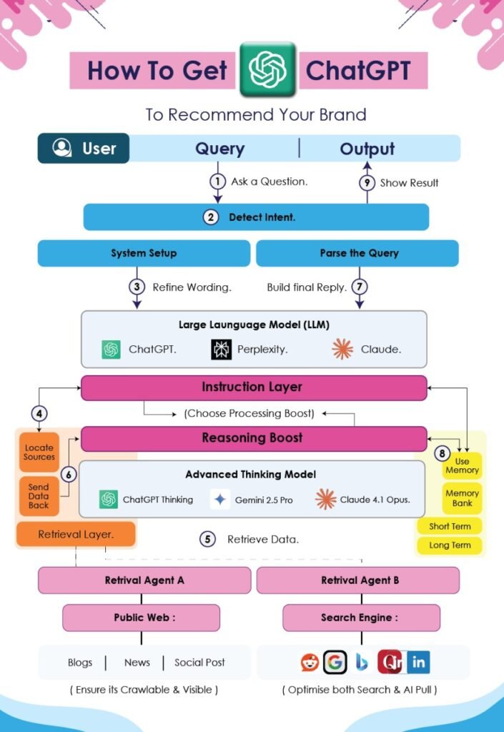 ChatGPT Brand Recommendations AI tools like ChatGPT are shaping how people discover products, services, and brands online. But here’s the big question: how do you make sure Chat GPT actually recommends your brand when someone asks a question?
