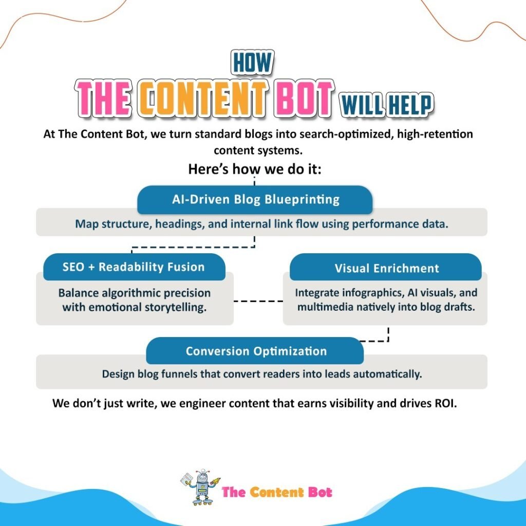 At The Content Bot, we turn standard blogs into search-optimized, high-retention content systems.