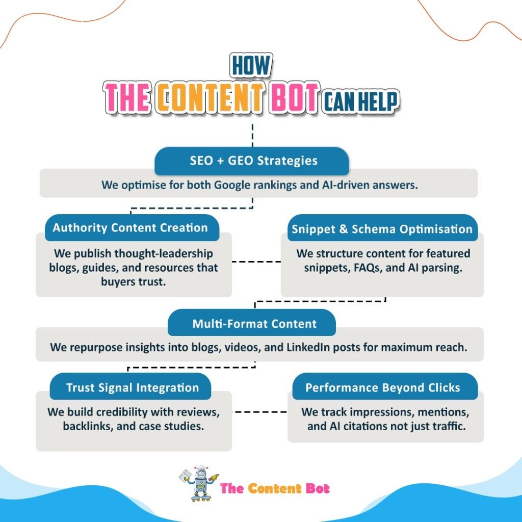 At The Content Bot, we help brands escape invisibility by building search-driven authority. Here’s how: