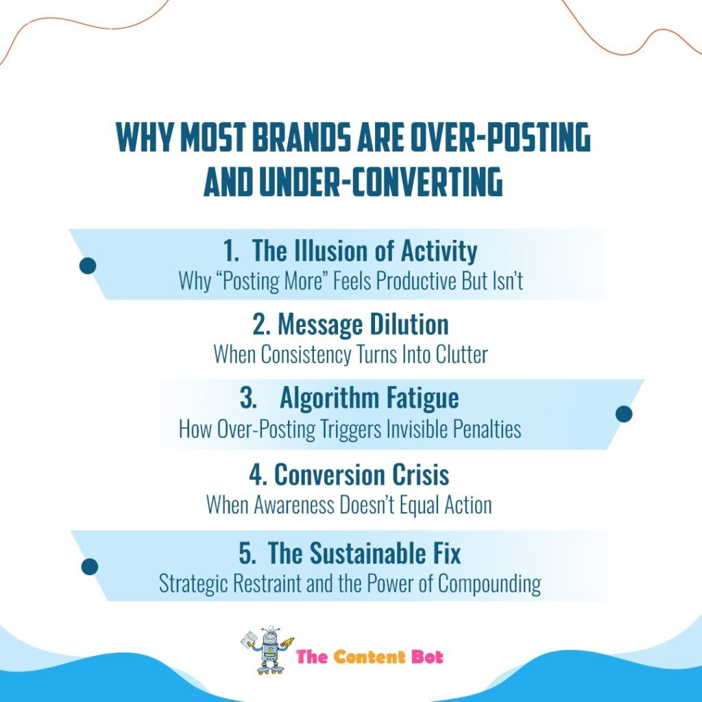 This blog unpacks why over-posting destroys conversion and how to fix it by shifting from content quantity to content precision  where every post earns attention, trust, and sales.